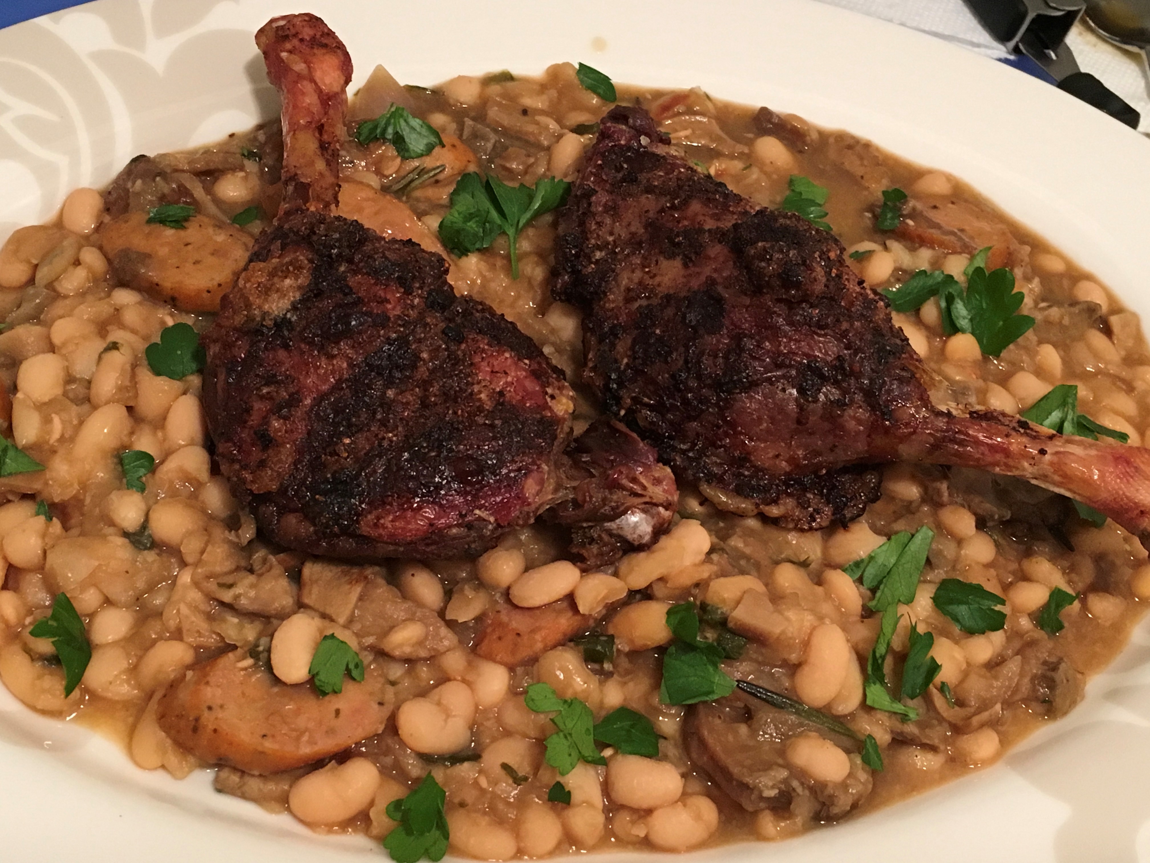 Duck Legs Over White Bean Sausage Ragout