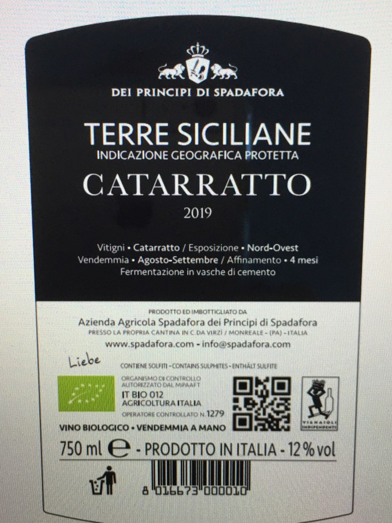 The winery makes several lines of wines, most from autocthonous (native) grape varieties. I love the idea of this crisp, citrus-scented white made from Catarratto (87%) and Inzolia (13%). Grapes come from northwest-facing parcels at 300 meters above sea level. The wine ages in concrete vats for two months, then spends another two months in bottle before release.