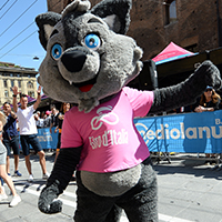 The Giro has a mascot, Lupo Wolfie. He represents a social responsibility project that’s a joint venture between race organizers and the World Wildlife Foundation Alpine Programme. One of the project’s goals is to reintroduce and support the native wolf population in the mountain regions of Italy. As residential development has expanded into wooded areas, these animals have become endangered, with consequences for biodiversity and balance in the ecosystem. Look for Lupo Wolfie to make appearances throughout the Giro.