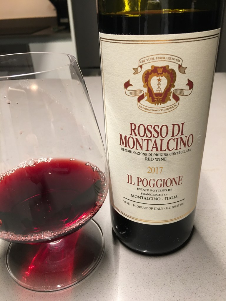 For those of you whose budgets make Brunello a special-occasion splurge (me!) there’s another wine from the region that will suit you nicely. Rosso di Montalcino DOC comes from the same geographic region as Brunello. While fruit for Brunello will be grown on the most favorable plots and from the oldest vines, grapes destined for Rosso come from younger vines and/or may be grown on lower slopes.
