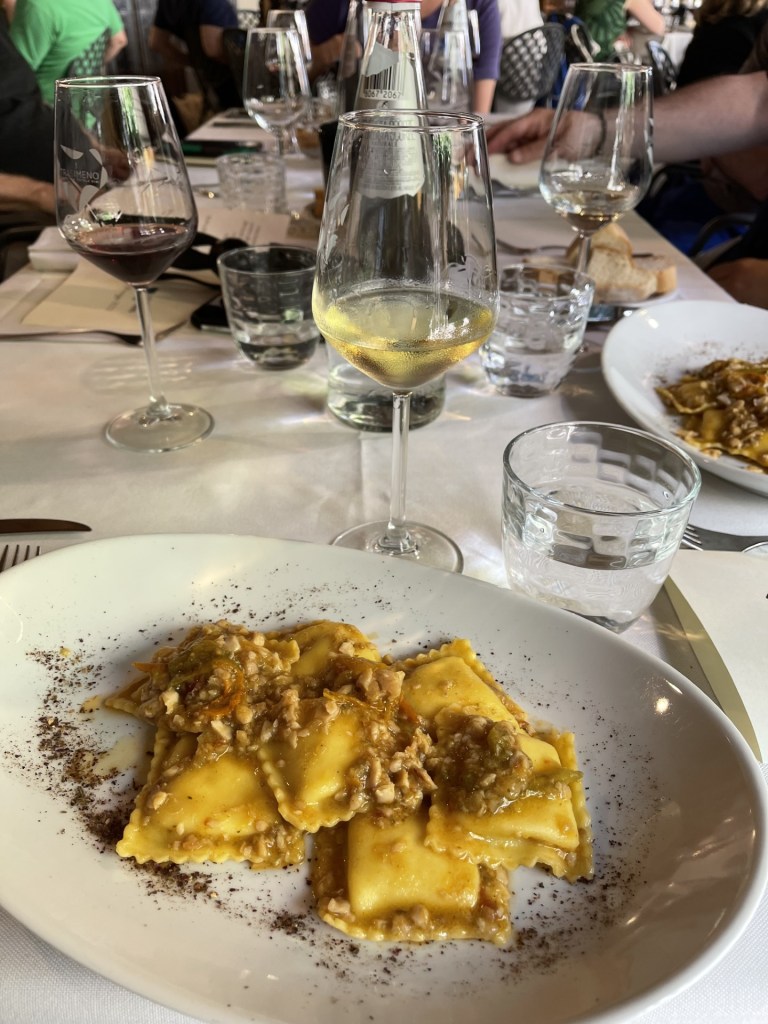 Our group attended two master classes, one for rosato wines and one for red wines. All were made from what the locals call Gamay del Trasimeno which, oddly enough, is not Gamay at all, but Grenache. It is believed that the original vines came from Spain as part of a noblewoman’s dowry when she married into an Italian family.
