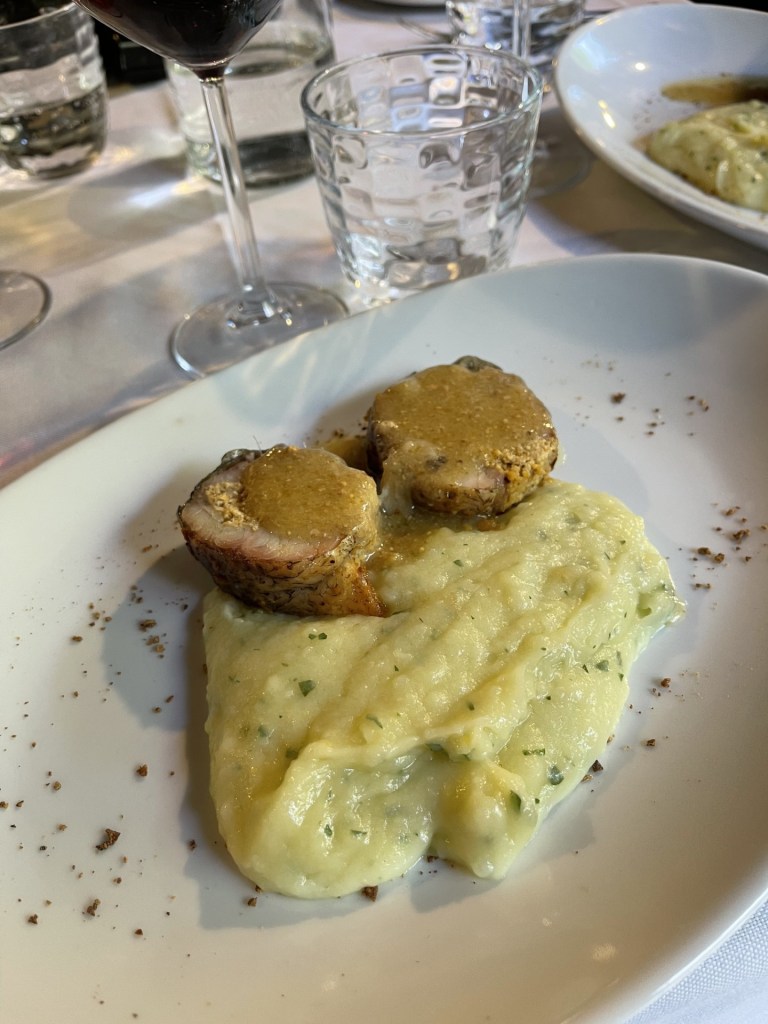 - Roulade of fish stuffed with local caviar served over mashed potatoes with parsley and lemon
