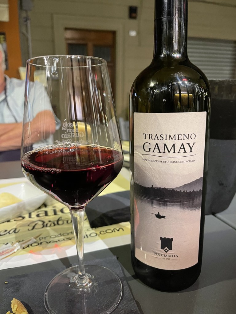 Whatever its origins, the red grape planted around Lake Trasimeno offers fresh, fruity wines that pair exceptionally well with the local cuisine. As you might imagine, that leans heavily toward freshwater fish from the lake and a colorful array of fruit and vegetables grown nearby.