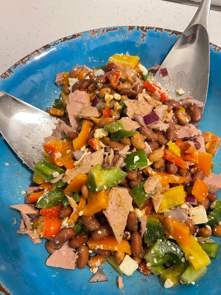I paired this wine with a simple salad of fresh peppers, beans, and feta cheese tossed in a red wine vinaigrette. Pretty good, but this wine deserves a more thoughtful pairing: think fresh corn and cheese soufflé or a corn and clam chowder. Even a bite of Mexican street corn would be delish. Looking ahead a few months, I think it could be the perfect summer sip to pair with fresh local produce. Boy, am I looking forward to that!